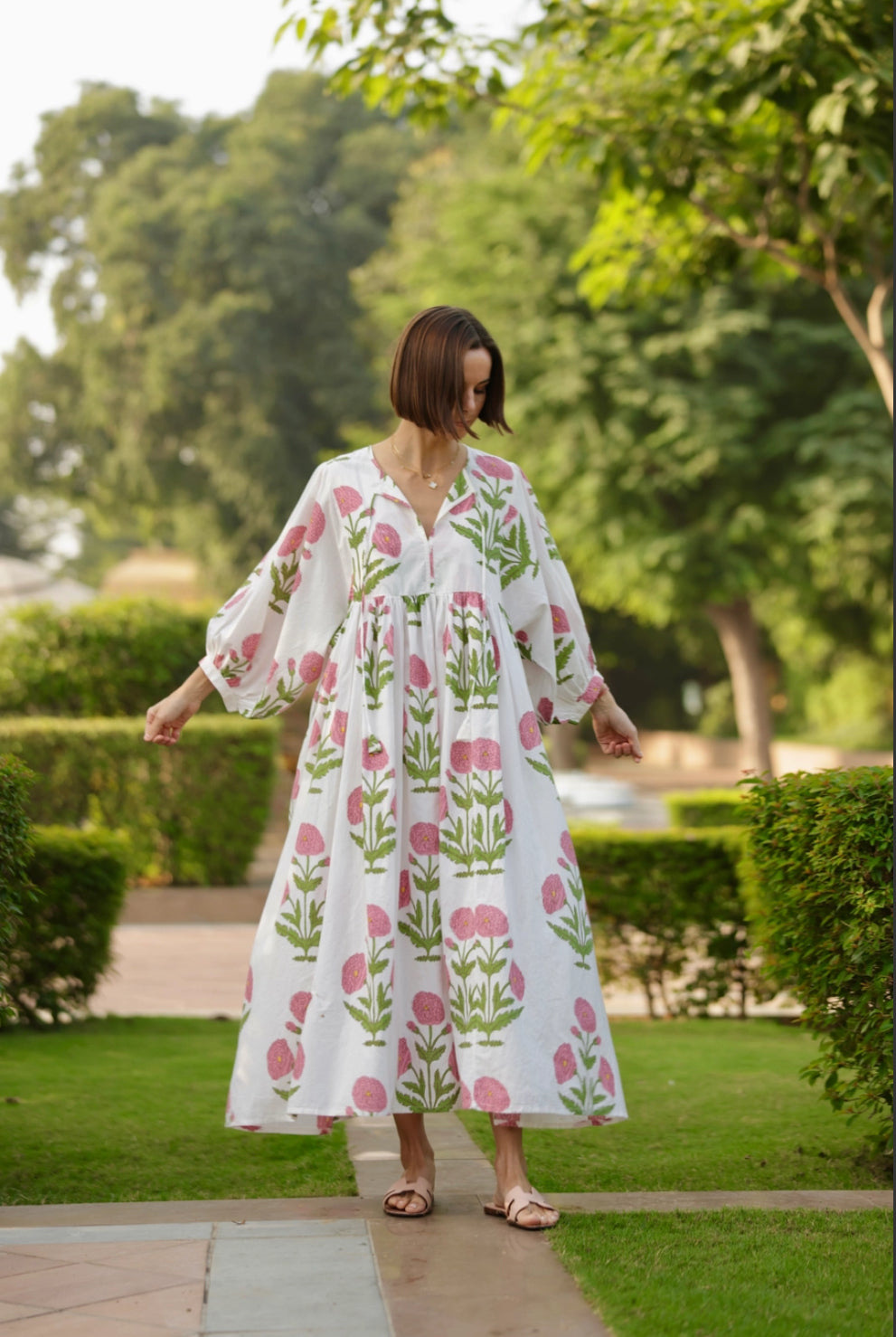 The Taj maxi dress from Maison Marigold! Made fair trade in India from beautiful hand block printed poplin.